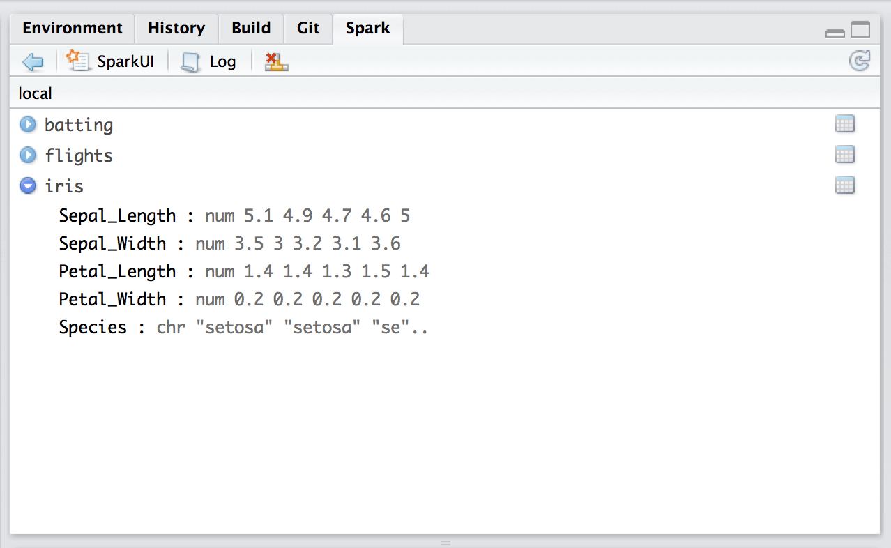 Integrated support for establishing Spark connections and browsing Spark data frames within the RStudio IDE.