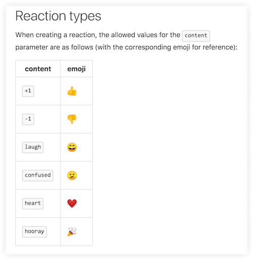 Sometimes you’ll have something to add to the conversation (like adding a reprex if one doesn’t exist, or making an existing reprex more minimal), but that’s not always the case. This is precisely what GitHub Reactions were meant for. To quote from their launch post: