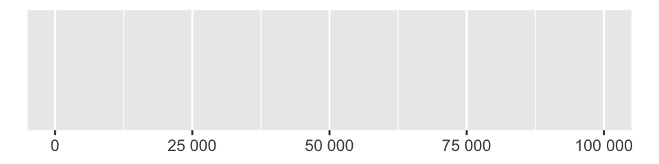 breaks_width()allows you to specify the distance between breaks rather than the number of them.1 2demo_continuous(c(0, 100), breaks = breaks_width(10)) #> scale_x_continuous(breaks = breaks_width(10))