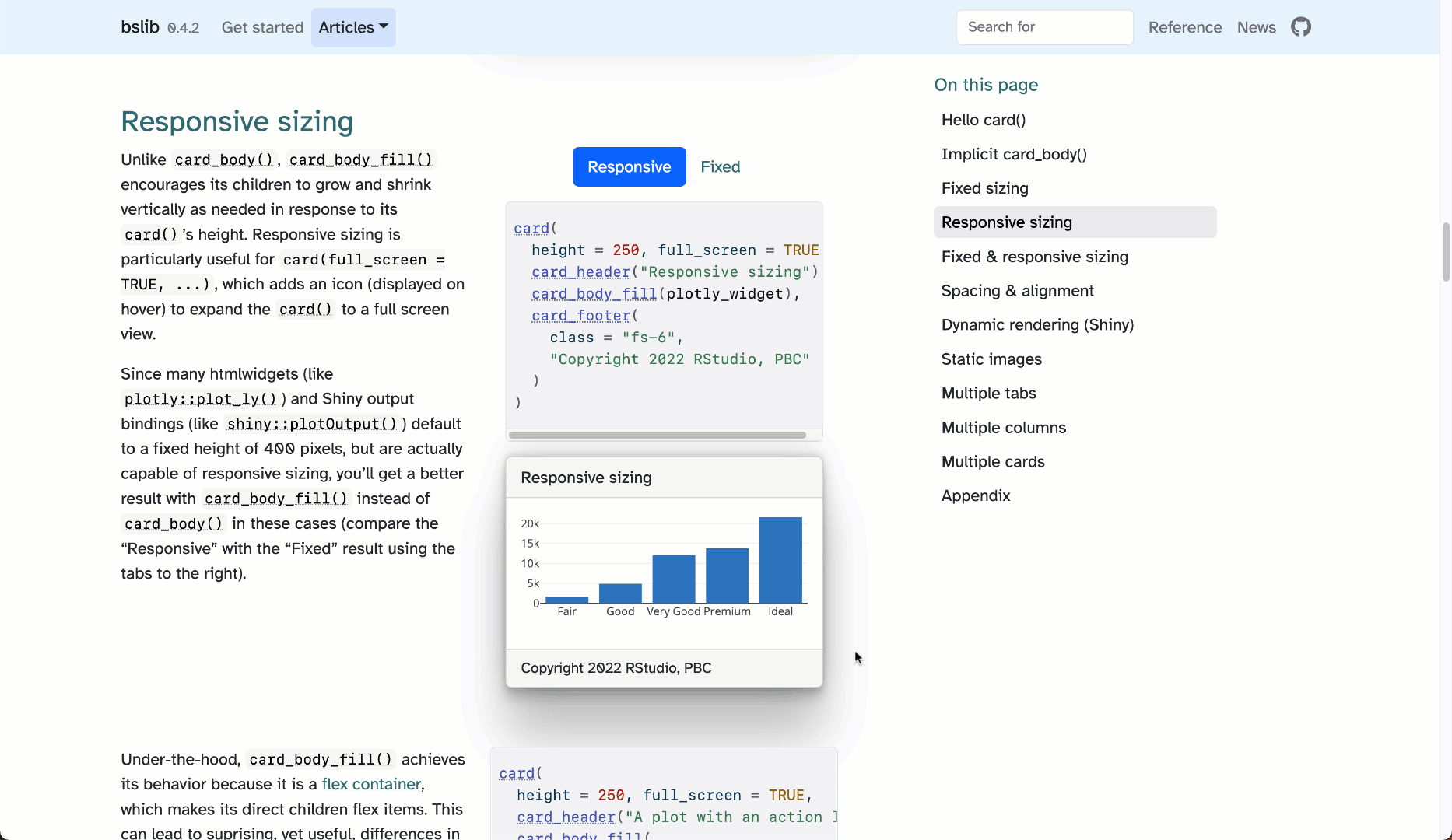 At their most basic level, cards simply provide borders and padding around content, but {bslib} adds on some additional functionality like expanding to full screen, integration with tab panels, static images, and more.